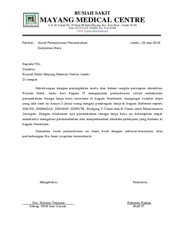 Surat Permohonan Penambahan Karyawan Baru Pdf